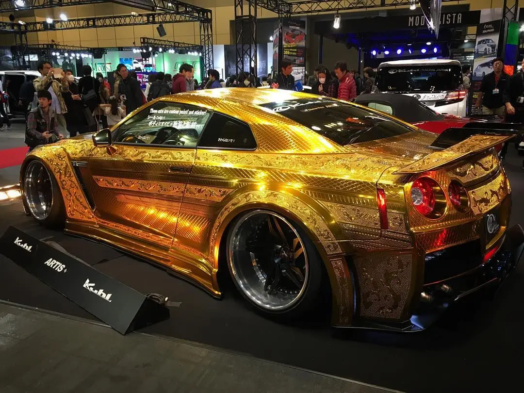 نیسان R35 GTR که پیش از این به خاطر طراحی شیک و عملکرد قدرتمندش شناخته شده بود، با نمای بیرونی طلاکاری شده، دگرگونی خیره کننده ای دریافت کرده است.