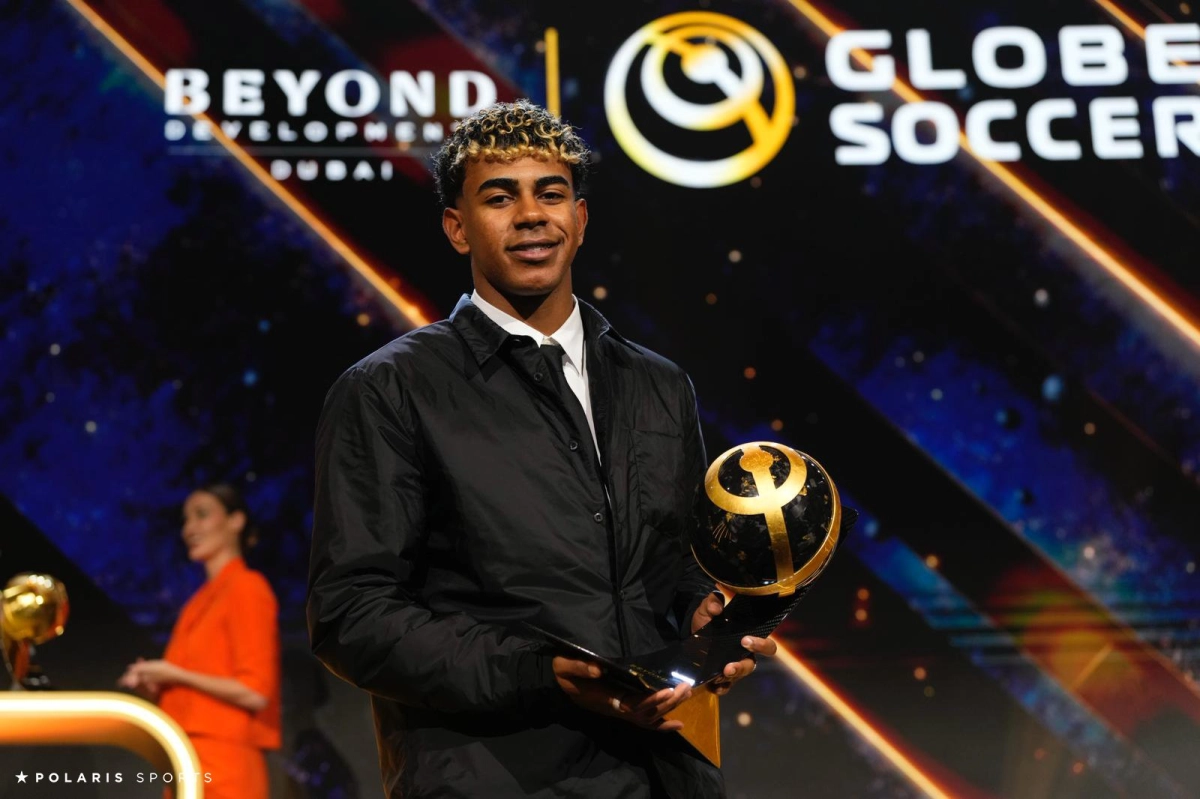 Lamine Yamal, the 18-year-old Barcelona sensation, claimed the Best Forward of the Year award at the prestigious Globe Soccer Awards 2025, held on Sunday night, December 28, at the luxurious Atlantis The Royal hotel in Dubai.