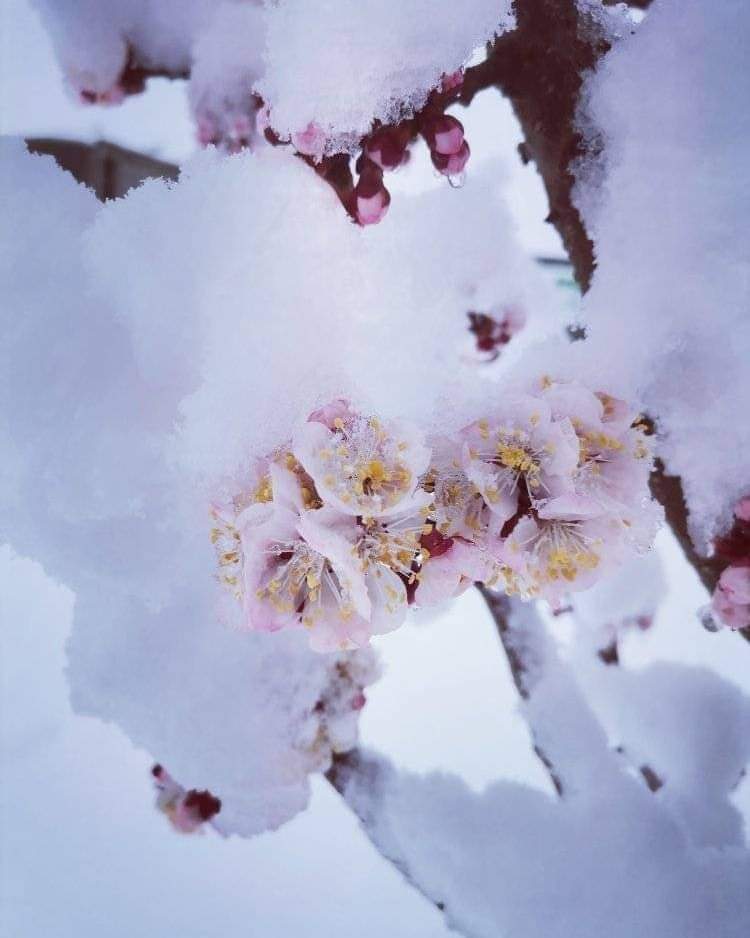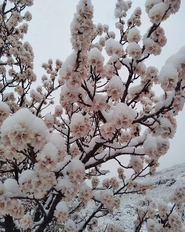 تصاویر ارسالی به کابل۲۴ نشان میدهد علیرغم شکوفه کردن درختان میوه برف سنگین روی شاخهها باریدهاست.