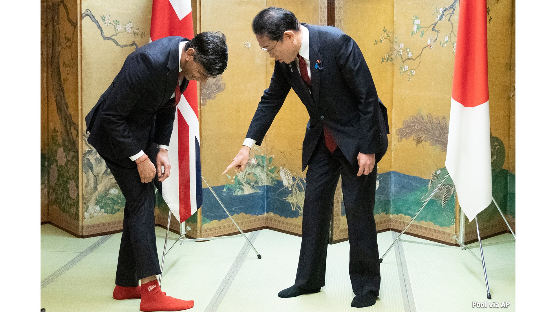 ریشی سوناک نخست‌وزیر بریتانیا در حاشیه دیدار با فومیو کیشیدا همتای جاپانی، با پوشیدن جوراب‌های تیم بیسبال مورد علاقه نخست‌وزیر جاپان، خبرساز شده است.