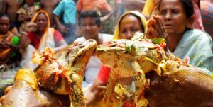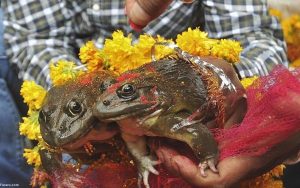 گروهی از روستاییان در ایالت آسام هند مراسم عروسی را برای دو بقه برگزار کردند. مراسم عروسی دوزیستان برای خدای هندو، لرد ایندرا بود تا پس از هفتهها گرمای شدید تابستان، باران بیاورد.